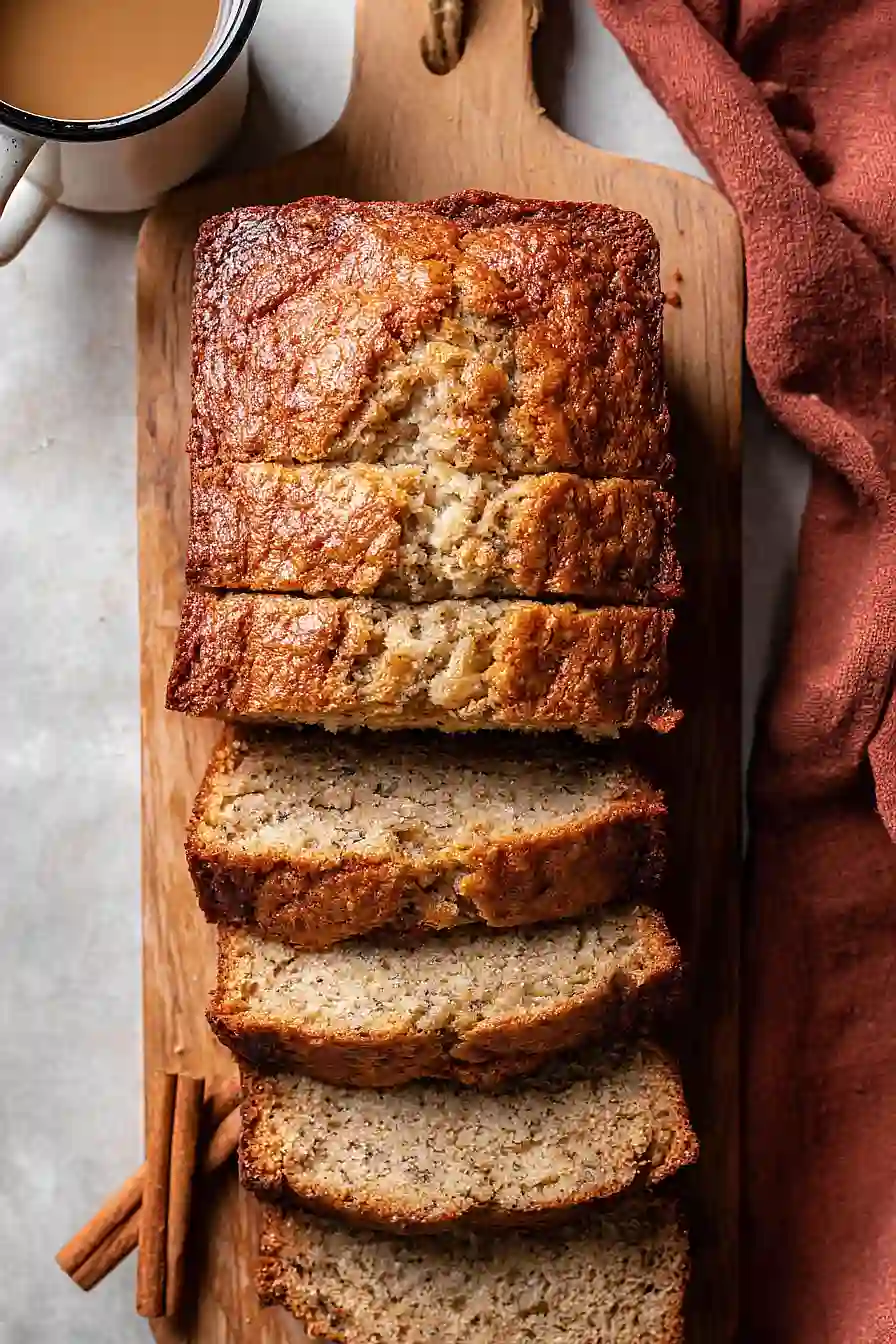 Freeze: Banana bread freezes really well, which is great if you want to bake ahead. Wrap individual slices or the whole loaf in plastic wrap, then again in foil or a freezer bag, and it’ll keep for up to 3 months. I like slicing it before freezing so I can grab just what I need.