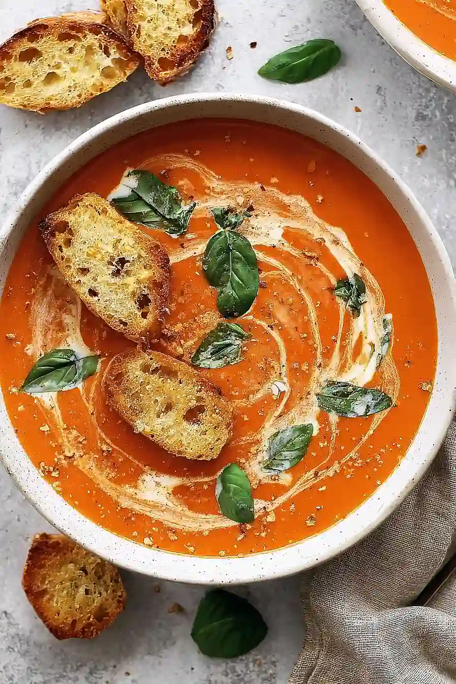 - Pour the blended soup back into a clean pot (if needed) and reheat gently over medium-low. Stir in the heavy cream and balsamic vinegar. Taste and adjust salt, pepper, and add a little sugar if needed to balance acidity. Heat through but do not boil. For a more luxurious texture, I like to add a splash more cream or even swirl some in when serving.