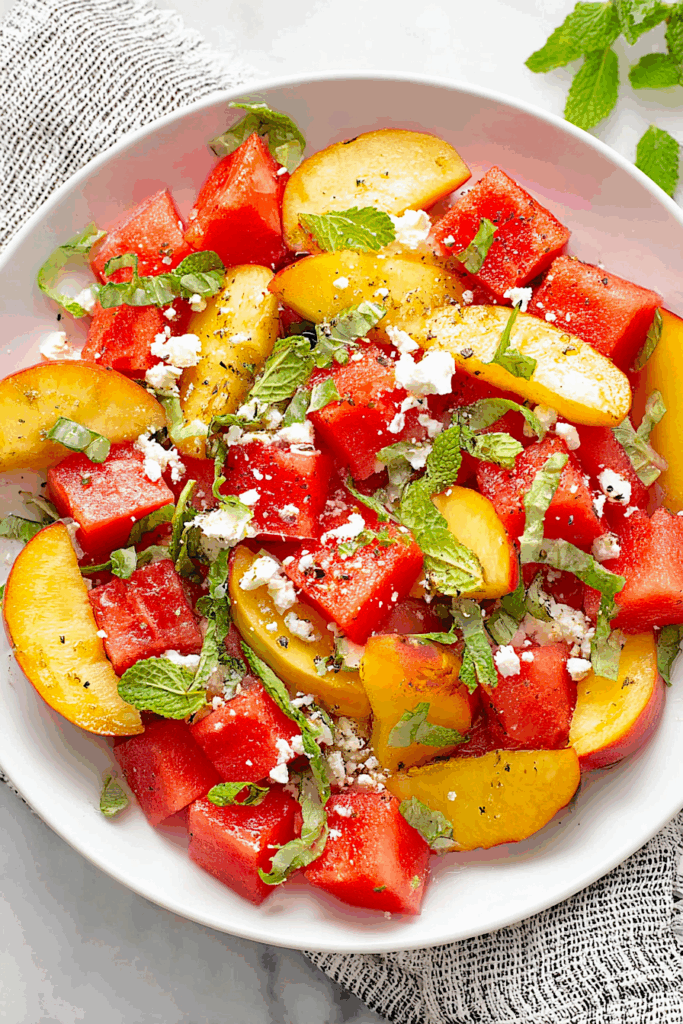 Juicy Peach Watermelon Salad