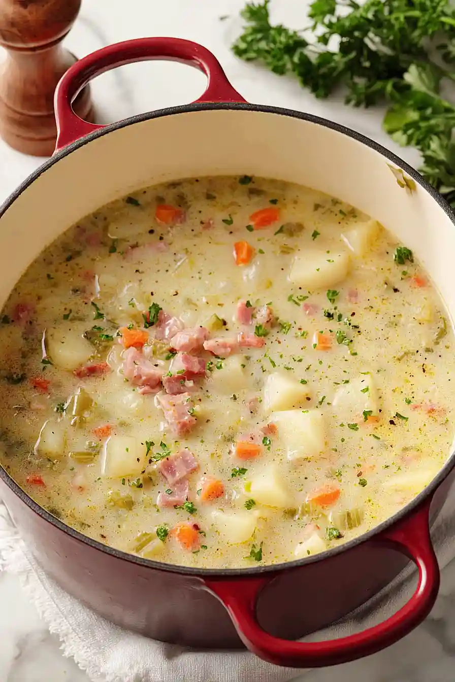 - Hearty and satisfying – Loaded with potatoes, ham, and vegetables in a creamy broth, this soup is filling enough to be a complete meal on its own.