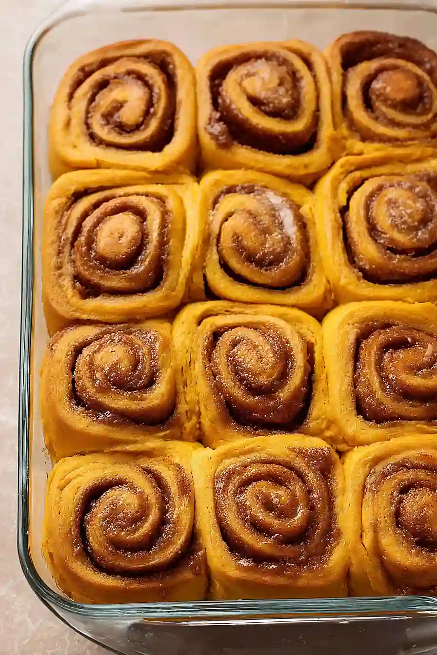 - Soft, pillowy texture – The pumpkin puree keeps these rolls incredibly moist and tender, so they stay fresh longer than regular cinnamon rolls.