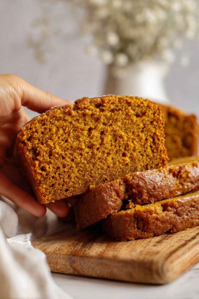 - Perfectly moist texture – The combination of pumpkin purée, oil, and water keeps this bread incredibly tender and moist for days.