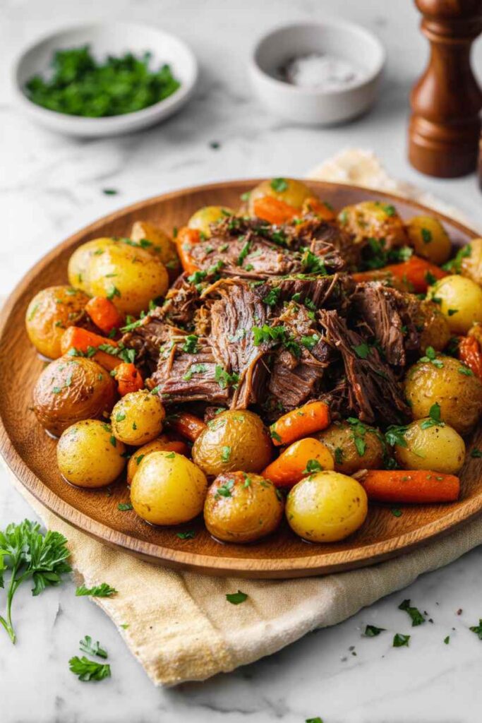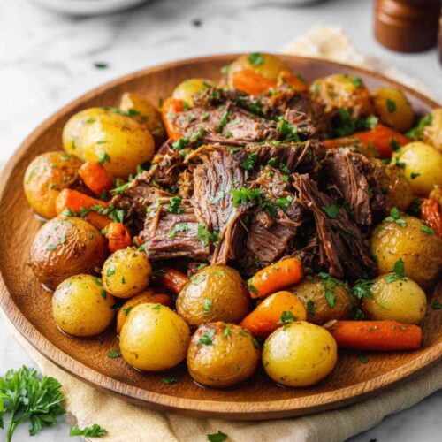 - Set-it-and-forget-it convenience – Just sear the roast, toss everything in the crockpot, and let it cook while you’re at work or running errands. Dinner will be ready when you are.