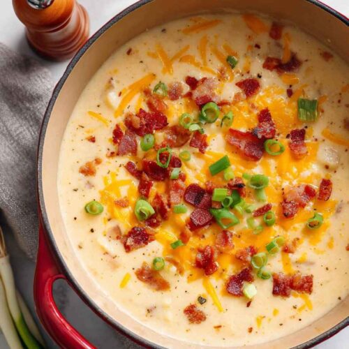 I was well into my thirties before I realized that loaded potato soup didn’t have to come from a can. Growing up, my mom would heat up the store-bought stuff on busy weeknights, and I thought that’s just how it was done.