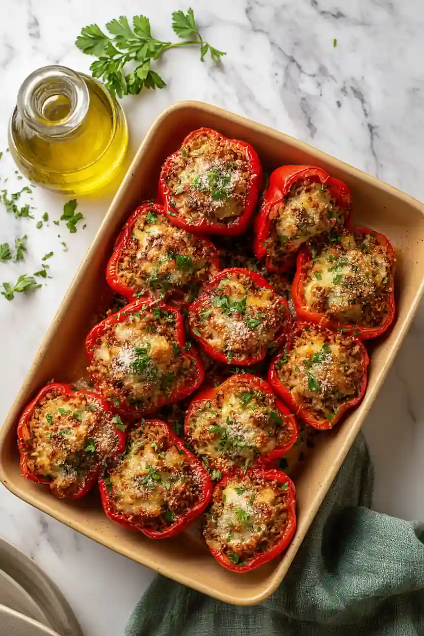 Freeze: You can freeze these peppers either before or after baking. If freezing unbaked, wrap each pepper individually in plastic wrap, then place in a freezer bag for up to 3 months. For already baked peppers, let them cool completely before freezing in an airtight container.