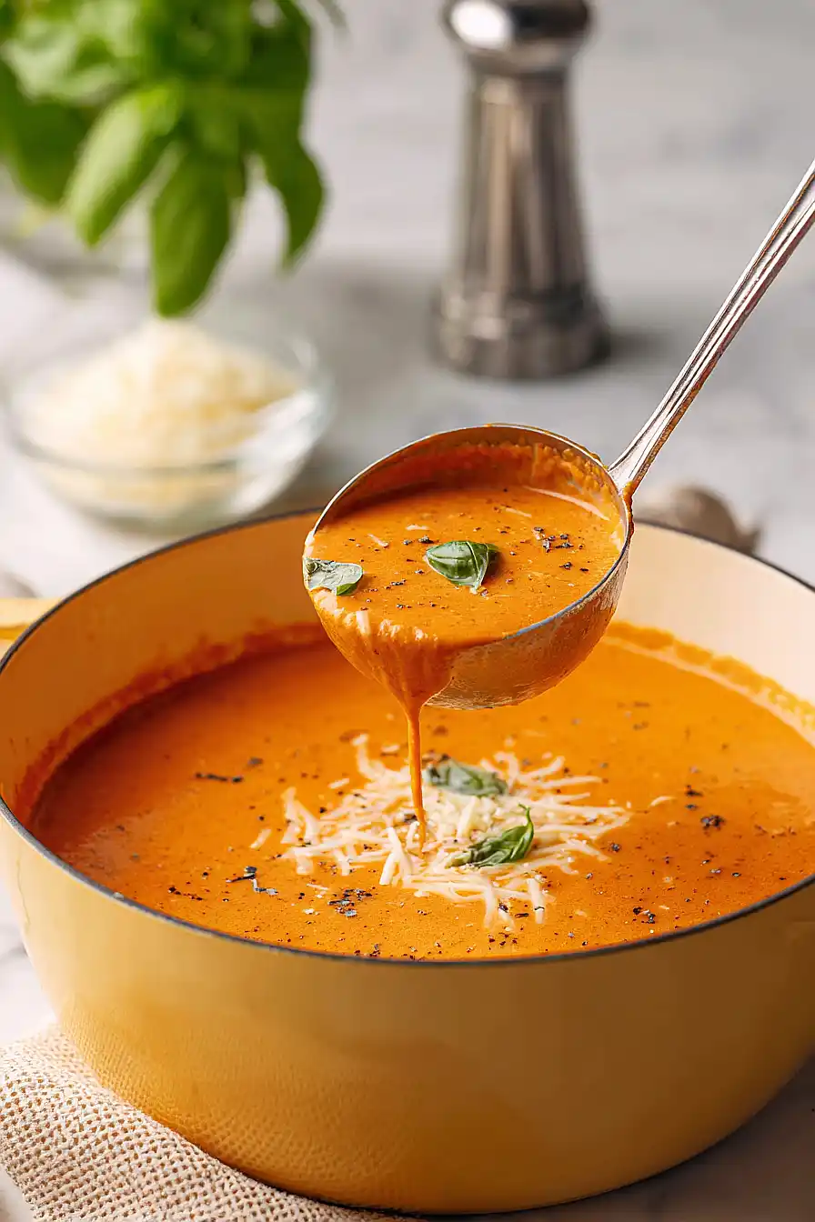 Finally, don’t skip the sugar – it balances the acidity of the tomatoes and brings out their natural sweetness, making the difference between a flat-tasting soup and one that tastes restaurant-quality.