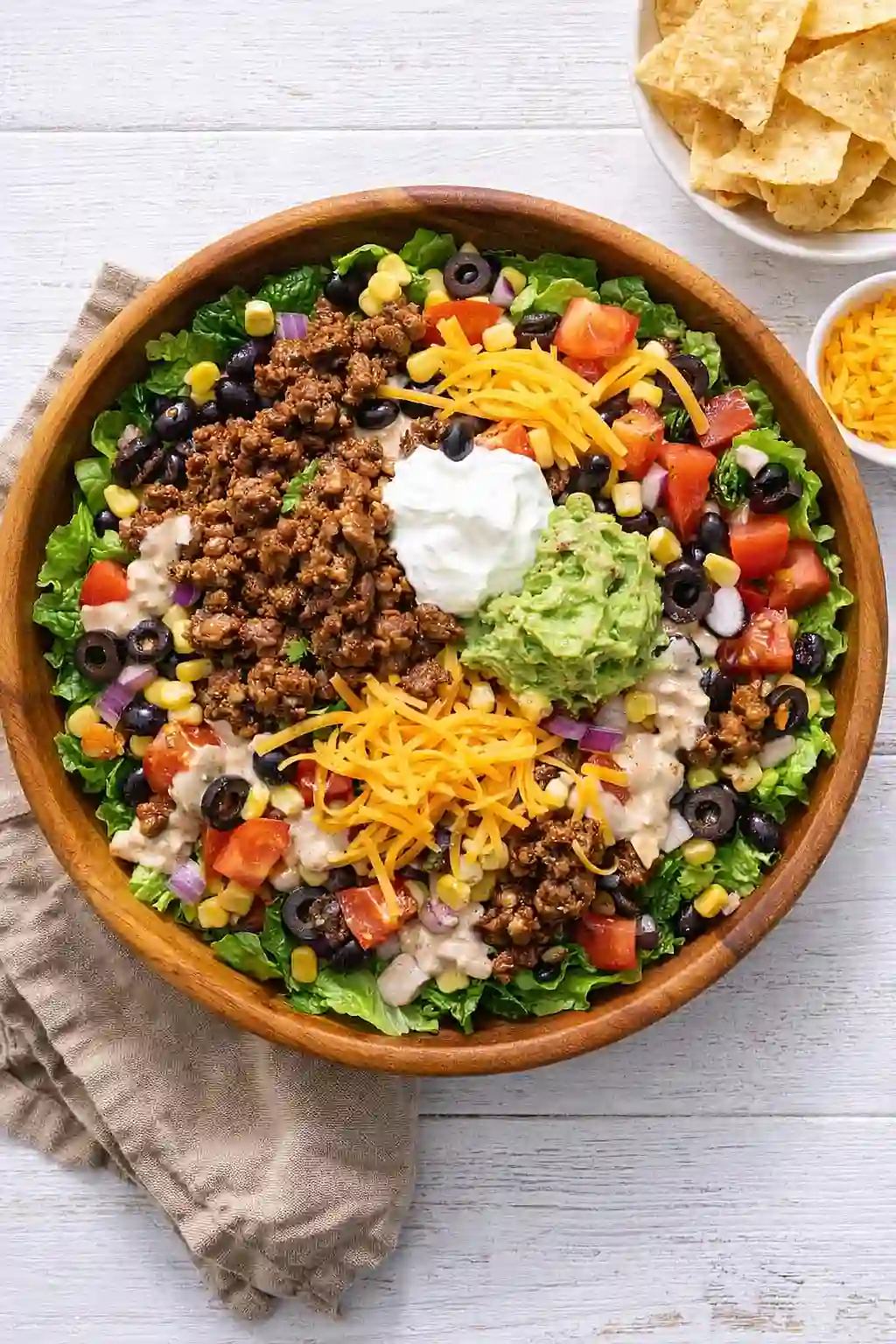 Another common error is not draining the ground beef well enough after browning, as excess grease will make your salad oily and can water down the dressing when it pools at the bottom of the bowl.