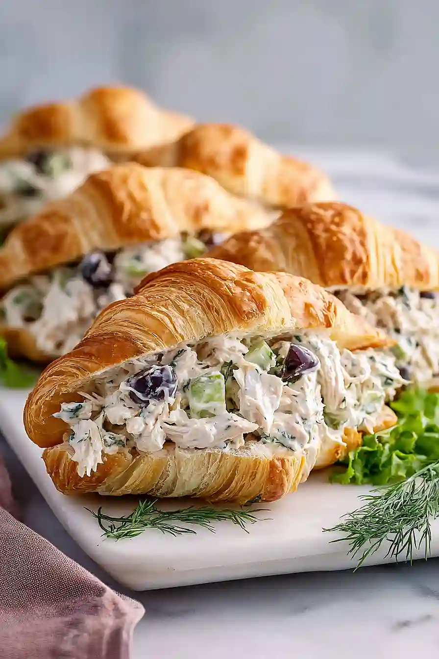 - Slice each large croissant in half horizontally. Spoon a generous portion of the chilled chicken salad onto the bottom half of each croissant, then cap with the top half. Serve immediately while the croissants are still tender and the salad is pleasantly cold. For a more elegant presentation, I sometimes place a small lettuce leaf or herb sprig on the croissant before adding the chicken salad to add visual appeal and prevent the croissant from becoming too soggy.